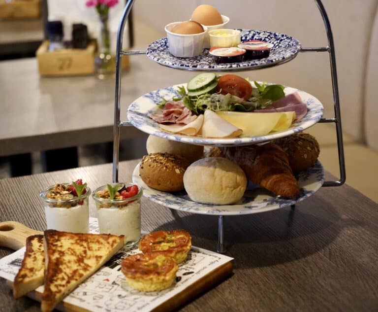 Ons ontbijt is ook uit te breiden met verschillende luxe opties, zoals zalm, roerei, yoghurt, een wentelteefje of een cinnamon roll.
